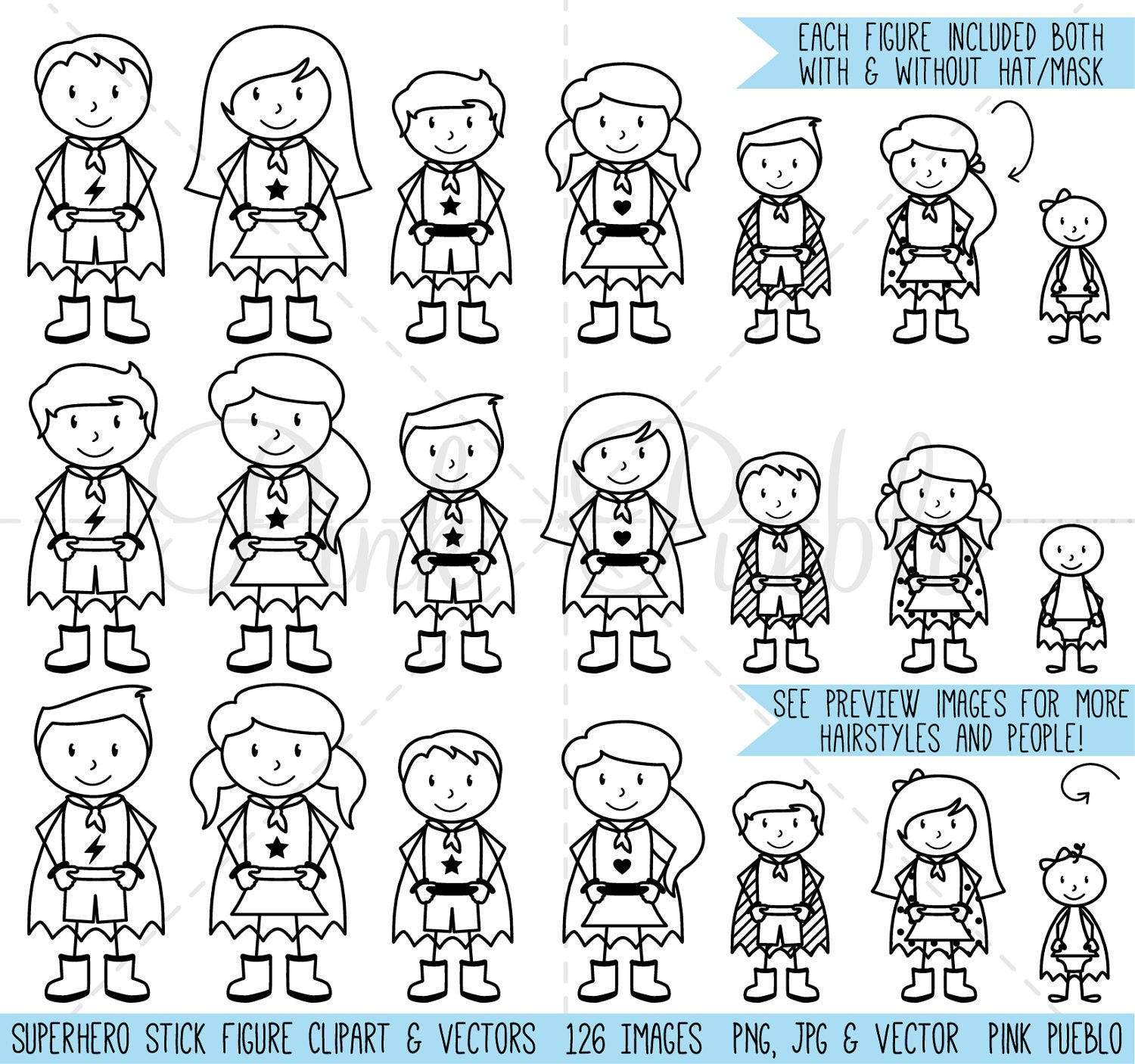 Superhero Stick Figure Clipart Clip Art Stick People Clipart Etsy